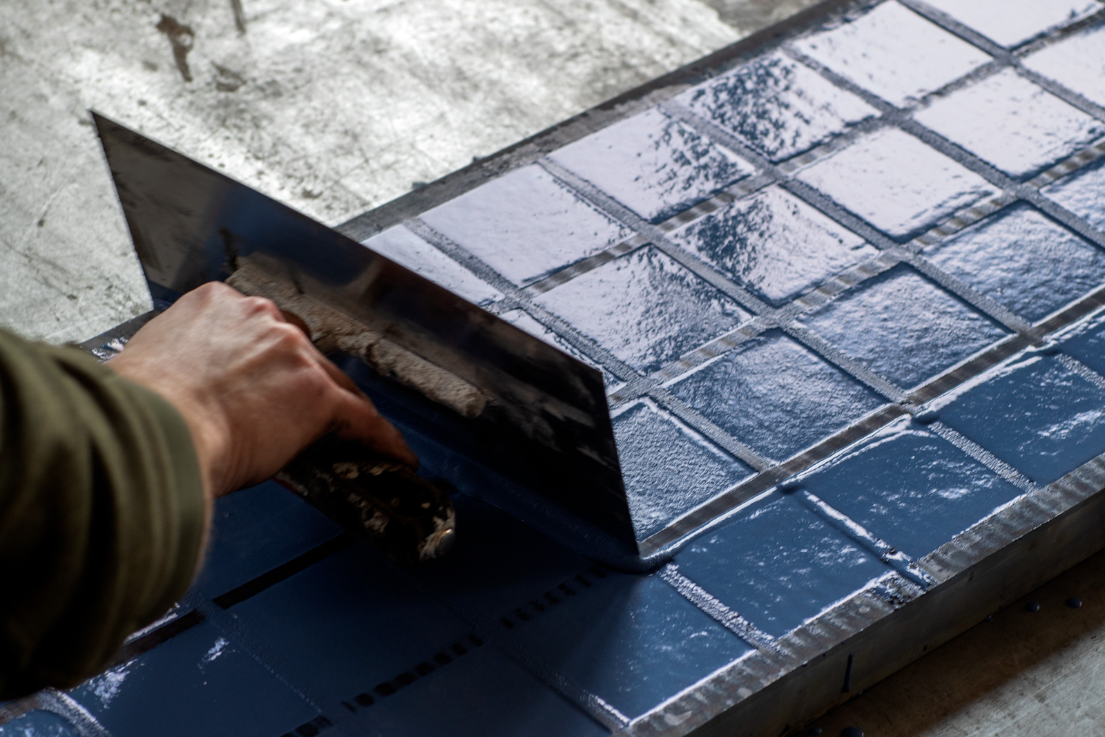 The “blanket”: a special edition of the Moon concrete tile collection, sized 7.5 × 7.5 cm.